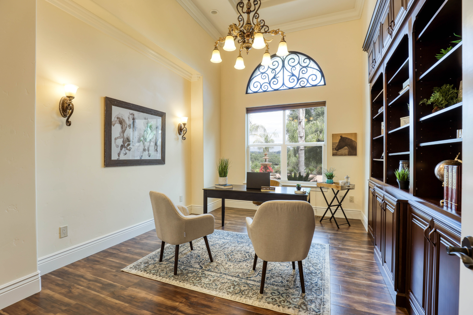 This stunning Mediterranean estate sits on a spacious 3-acre lot, complete with vineyard of grapes and an array of fruit trees including lemons, citrus and mandarins. Enjoy rustling leaves and picturesque surroundings while sipping your wine and basking in the sun on the estate’s sprawling grounds.
